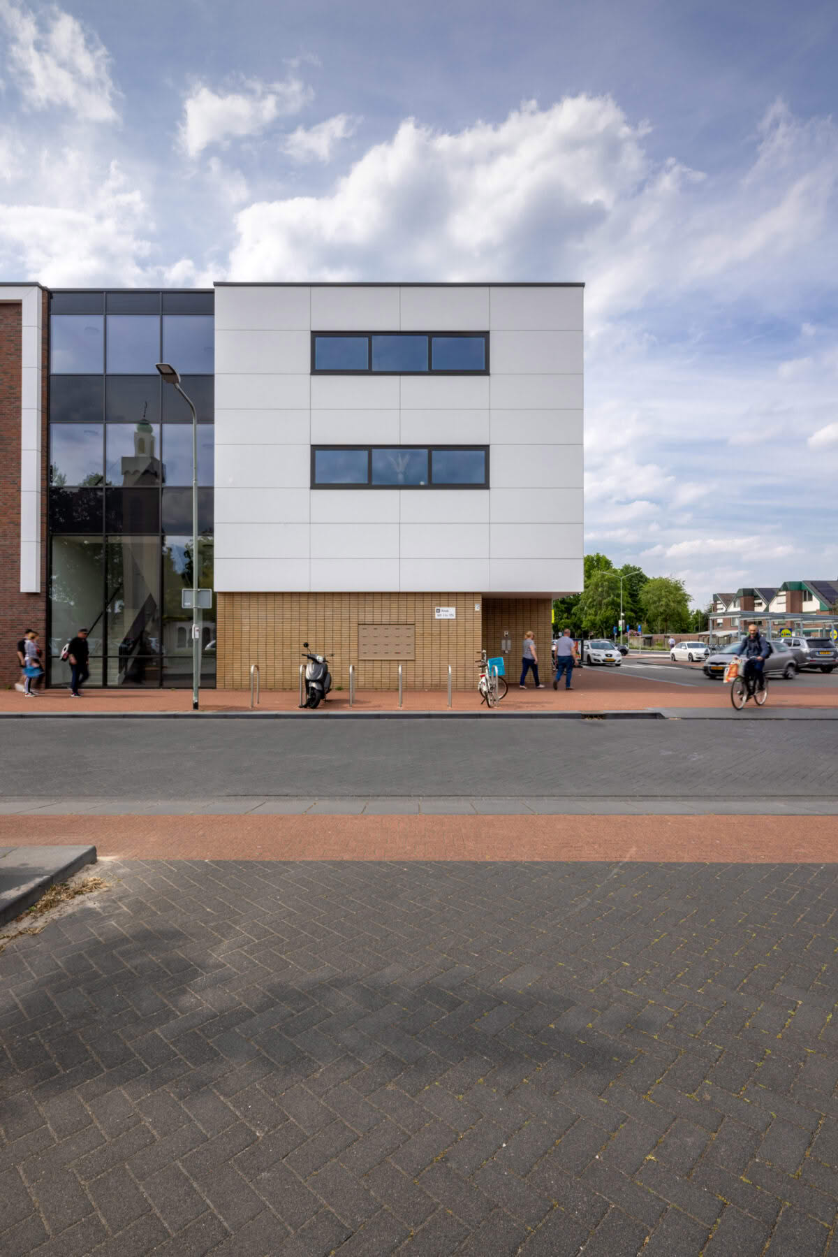 Le quartier Brukske de Venray a fait l'objet d'une rénovation complète. Un nouveau centre commercial avec des appartements au-dessus a été construit. Le centre commercial se compose de quatre unités, dont deux sont destinées à des supermarchés. Au-dessus de ces unités, vingt appartements locatifs sociaux ont été créés. La durabilité était un facteur important pour ce projet. Les façades ont donc été réalisées avec le panneau de façade Ornimat dans la couleur EST01 White.