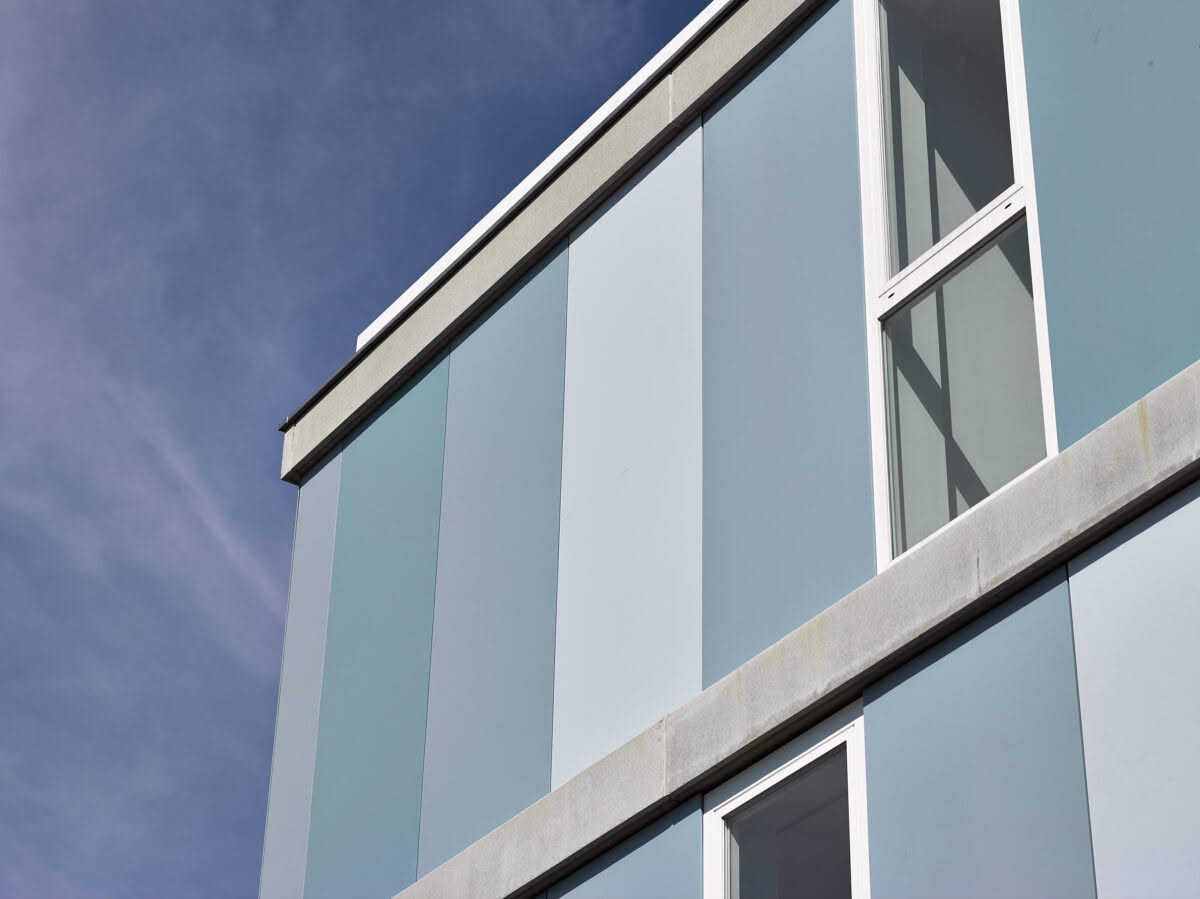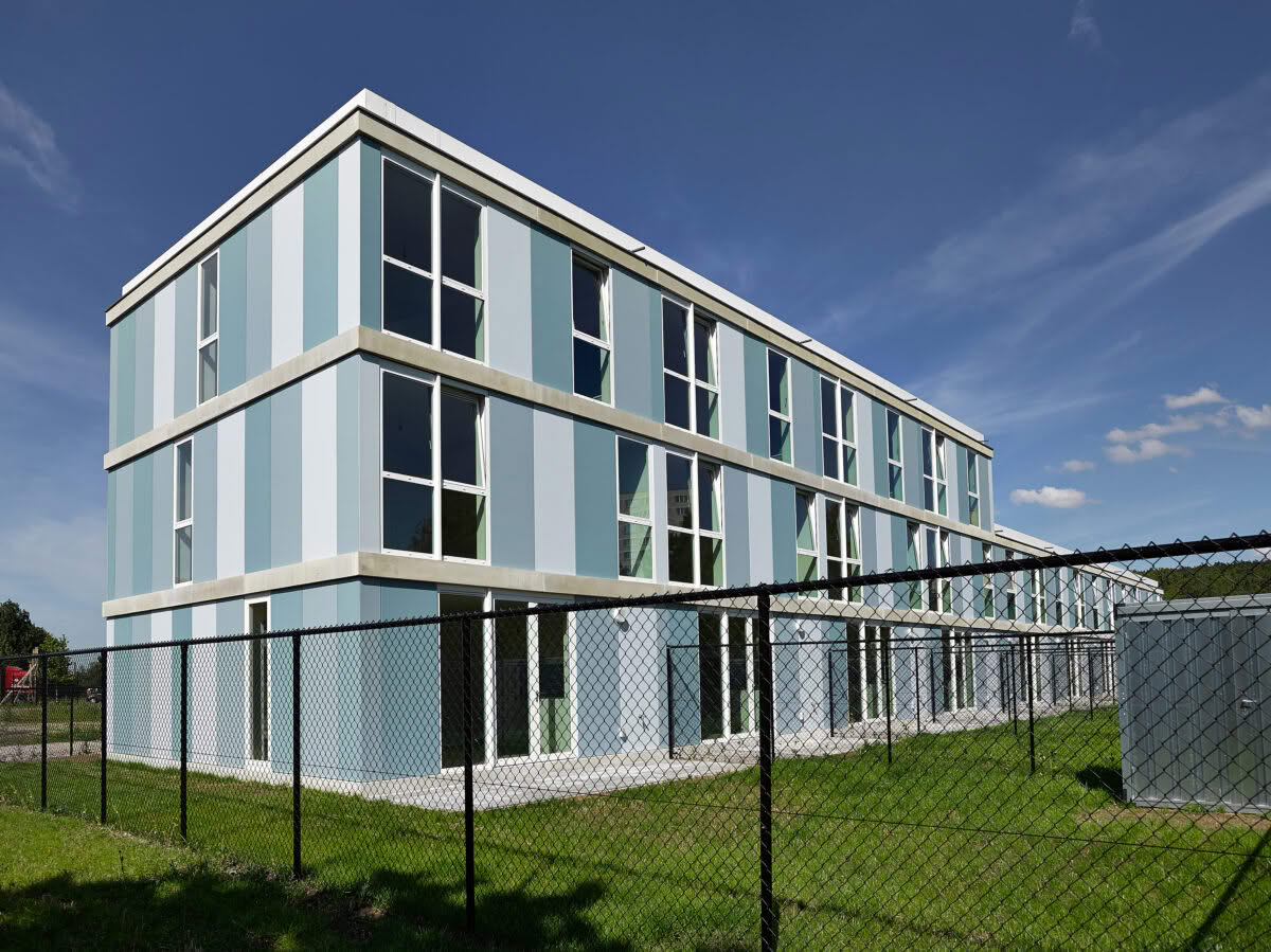 The residential complex was commissioned by Woonhaven Antwerp. This building was realised using 3 Ornimat colours, the basic tone of which is blue. The blue colours contrast nicely with the grey buildings around the site. Currently, only the colour Steel is in the standard range.